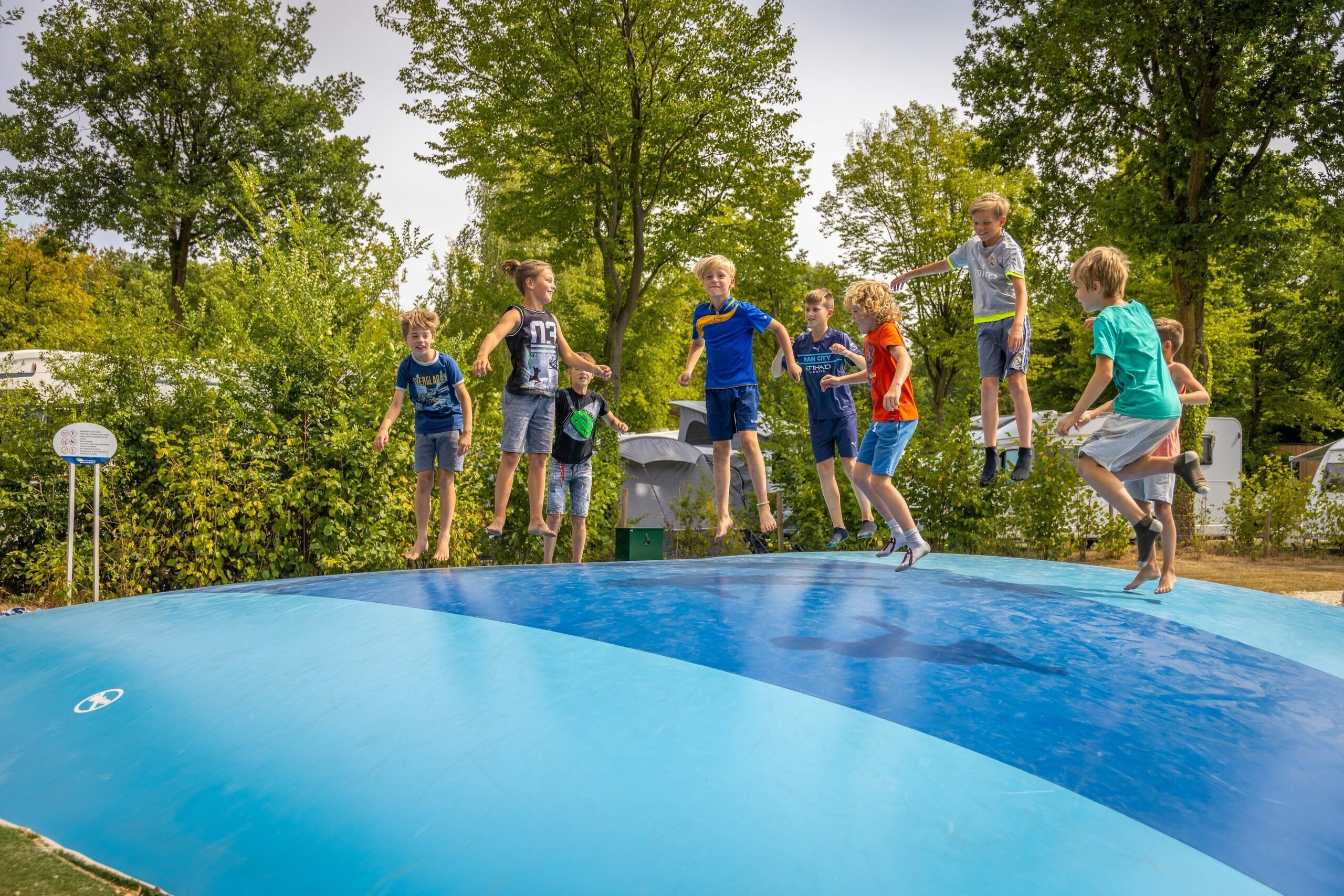 The campsite has a beautiful playground. In the playground, various play equipment is available that makes the stay extra fun for the children. For example, there is an air trampoline, the most favorite play equipment on the entire campsite.